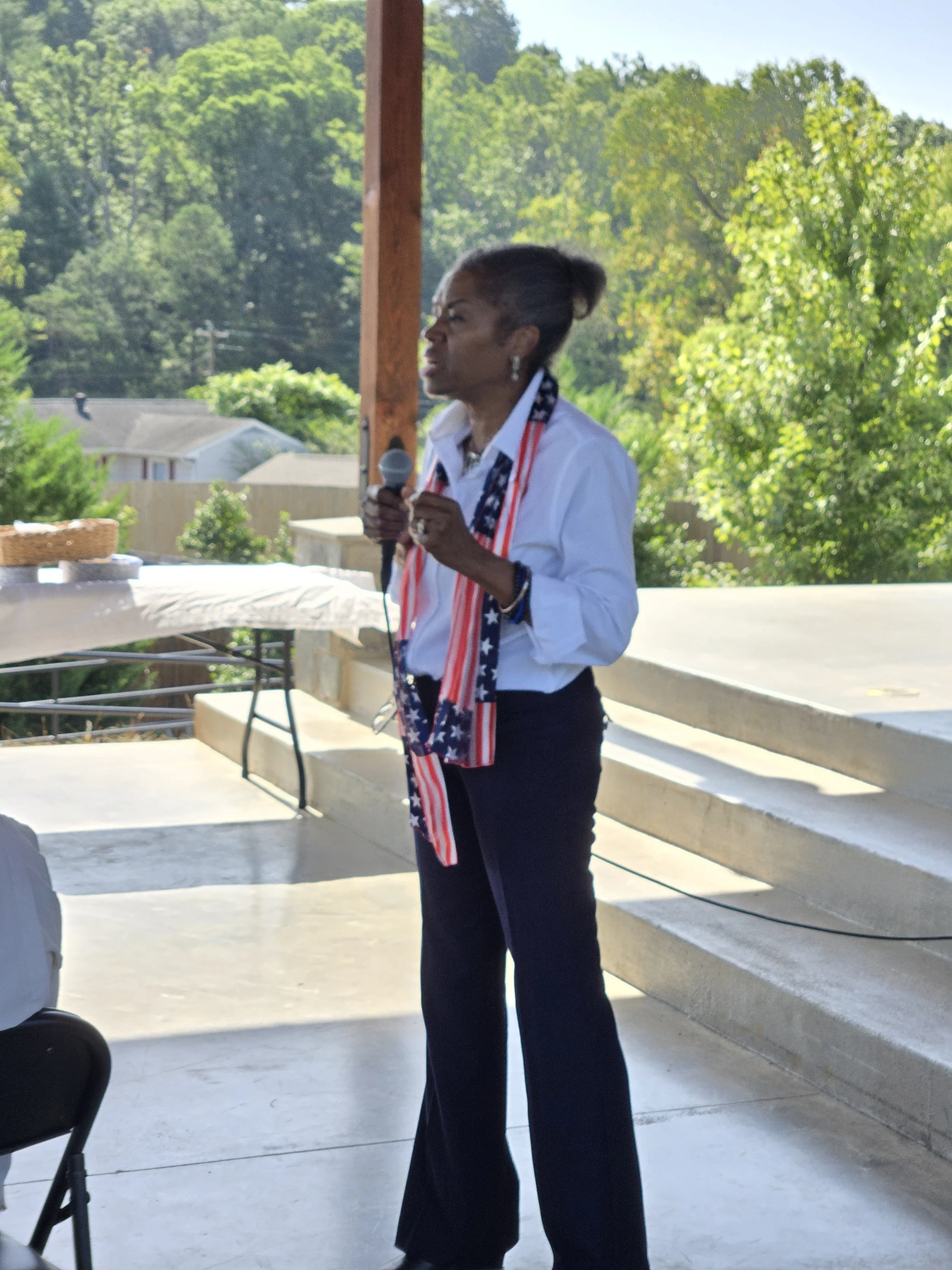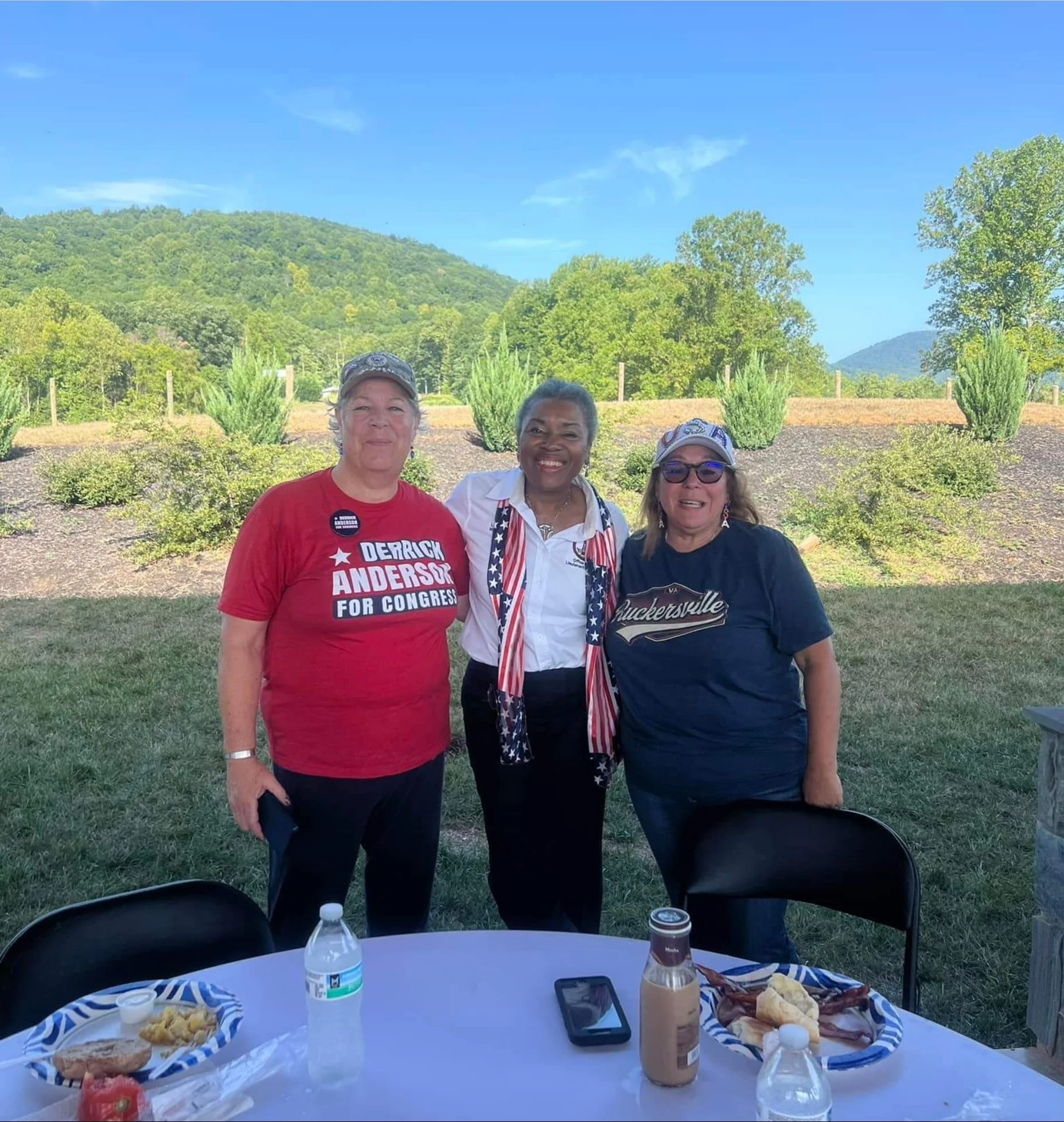 August 3rd, 2024: The GCRC was thrilled to welcome the Lieutenant Governor of Virginia to the Pavilion at Maybelle’s Market in Dyke for a breakfast and conversation with our members! As Winsome explores a run for Governor next year, she is out and about meeting with voters and talking about the issues, and we are so thankful she made a point to come to Greene!